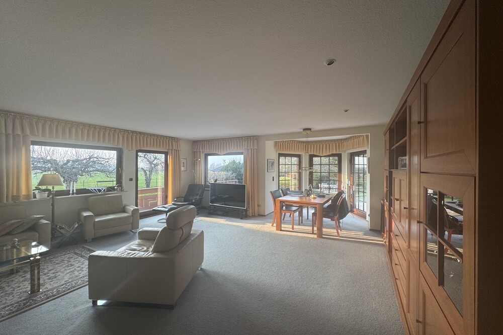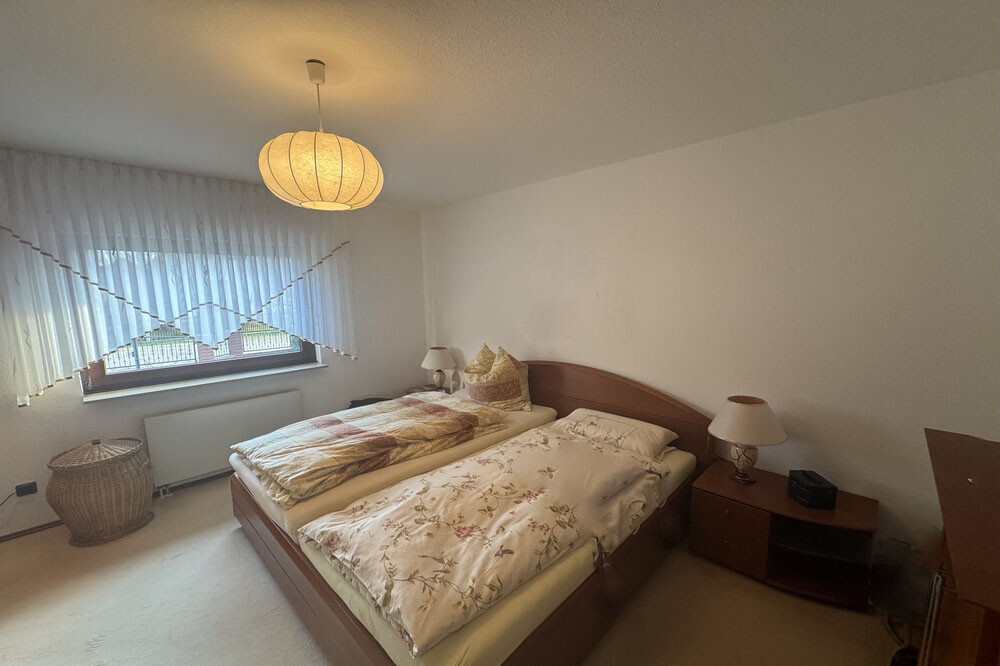 Das Raumangebot umfasst zwei Schlafzimmer sowie ein separates Gästezimmer, das flexibel als Büro, Hobbyraum oder zusätzliches Schlafzimmer genutzt werden kann. Das Tageslichtbad ist funktional ausgestattet und verfügt über Badewanne und Dusche. Ein separates Gäste-Bad mit Dusche ist ebenfalls vorhanden.