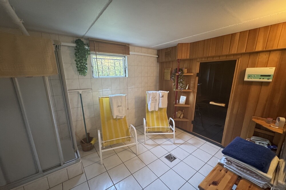 Ein besonderes Ausstattungsmerkmal ist die hauseigene Sauna, die zusätzlichen Komfort im Alltag bietet. Im Untergeschoss befindet sich eine großzügige Garage mit direktem Hauszugang . Zusätzlich bietet das Kellergeschoss reichlich Stauraum und Platz für Haustechnik, Vorräte oder Hobbys.