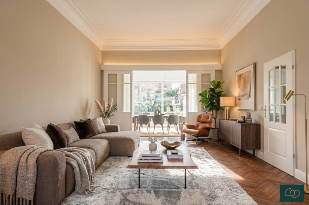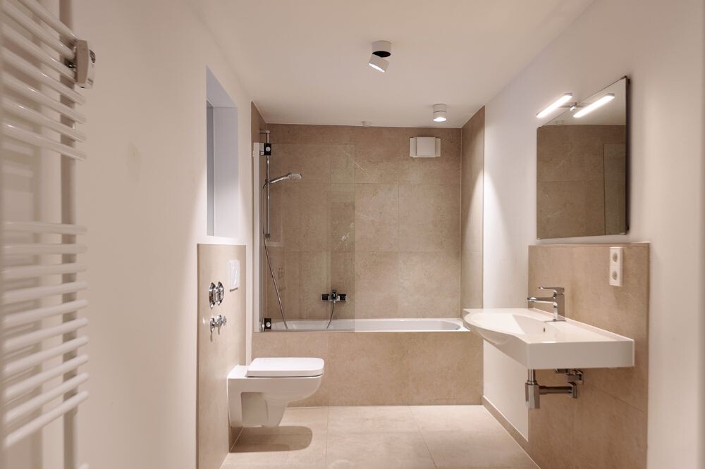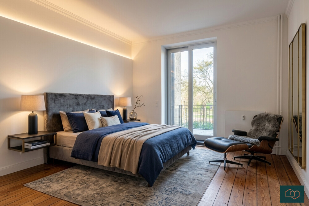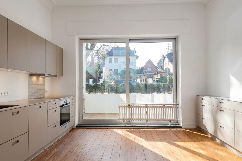 Schon beim Eintreten überzeugt die Wohnung mit einem großzügigen Raumgefühl. Hohe Decken mit feinen Stuckverzierungen, große Fensterflächen und ein durchdachter Grundriss schaffen ein helles und einladendes Ambiente. Edles Fischgrätparkett im Wohnbereich sowie hochwertige Bodenbeläge in den Schlafräumen unterstreichen die zeitlose Eleganz.